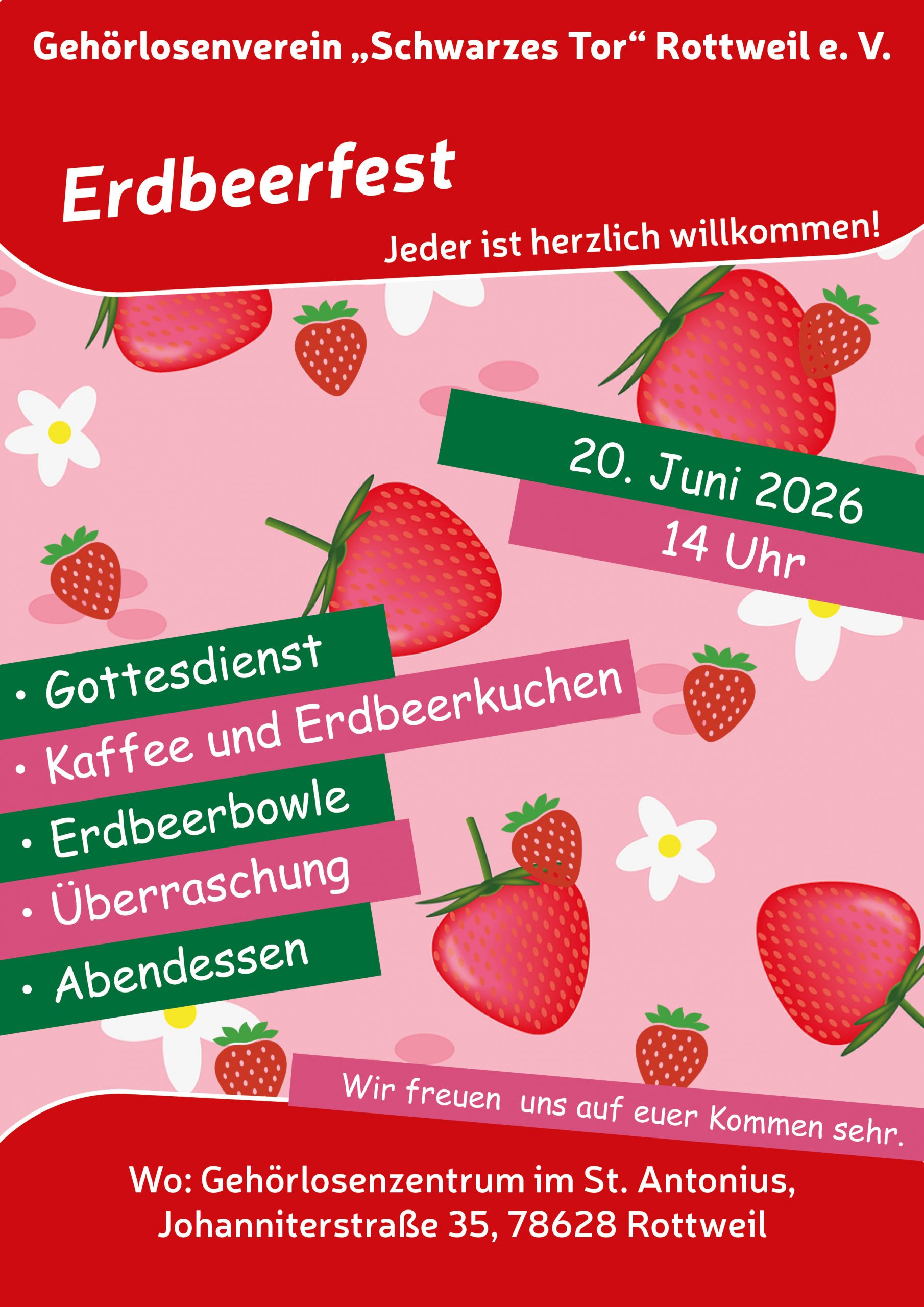 14 Uhr Gottesdienst, Kaffeezeit, Unterhaltung Kein Feierabendtreff!